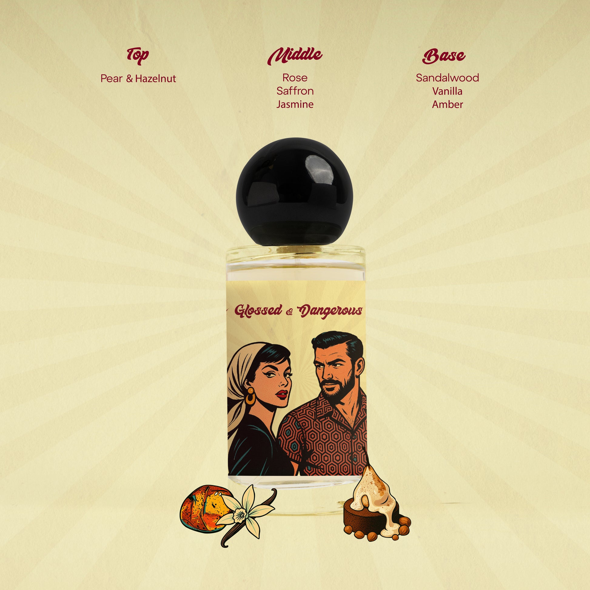 A bold scent for those who walk into the room already unforgettable. Glossed & Dangerous blends juicy pear and creamy hazelnut with a touch of exotic saffron and sensual jasmine.ย all wrapped in warm vanilla and sandalwood for a dangerously addictive trail.