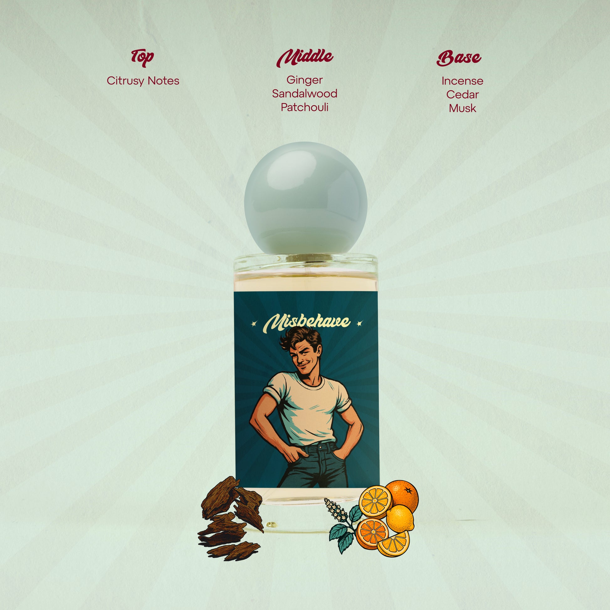 Misbehave is magnetic energy fresh, spicy, and mysteriously sexy. A lively citrus opening grabs attention instantly, followed by warm sandalwood and bold patchouli to deepen the attitude. Incense and musk linger long after the moment…